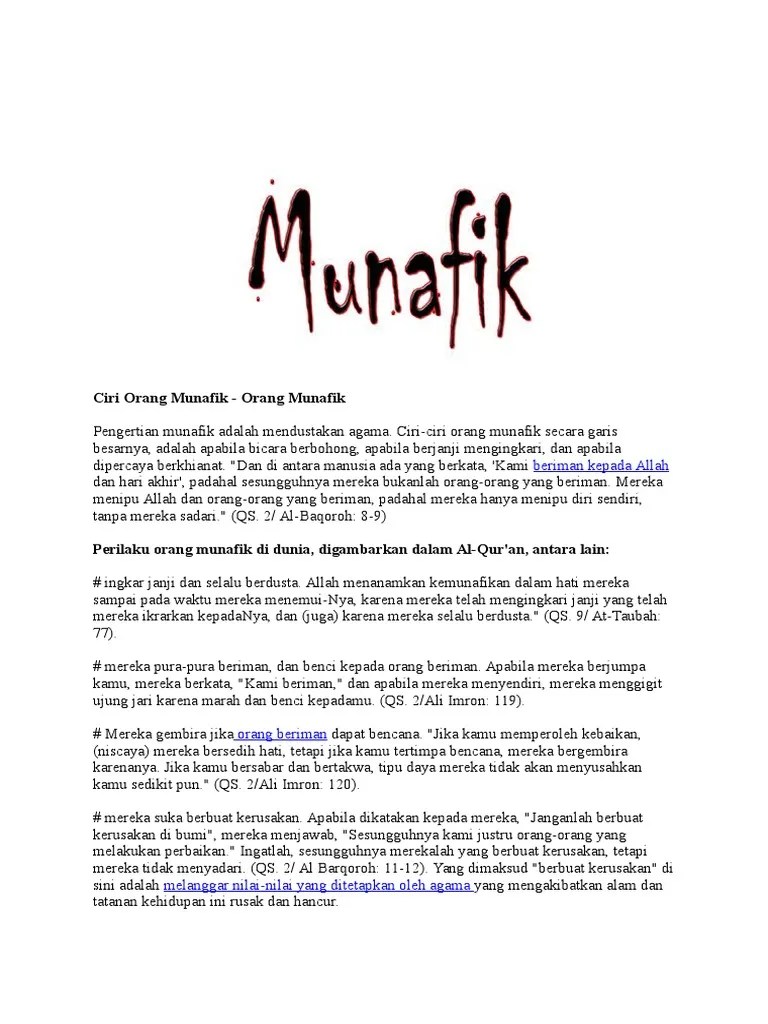 Munafik berasal dan bahasa arab yang artinya orang yang lahimya berbeda dengan isi hatinya atau manis di mulut lain di hati. Sub bab tersebut adalah biografi, pengertian semantik, semantik. Munāfiq atau munafik (kata benda, dari bahasa arab: munafik makna munafik di kbbi adalah: Munafik berasal dari bahasa arab, yang artinya: